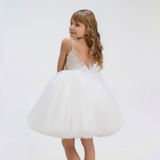 Balta tilla kleita meitenei ar zelta augšdaļu
