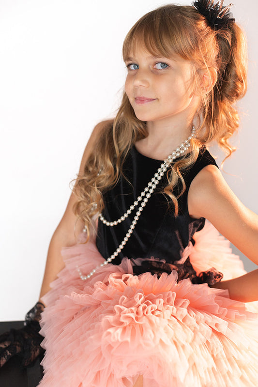 Premium bērnu svētku kleita, melns samts un tilla kuplums
