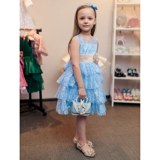 Svinīga bērnu kleitiņa Alise gaiši zila