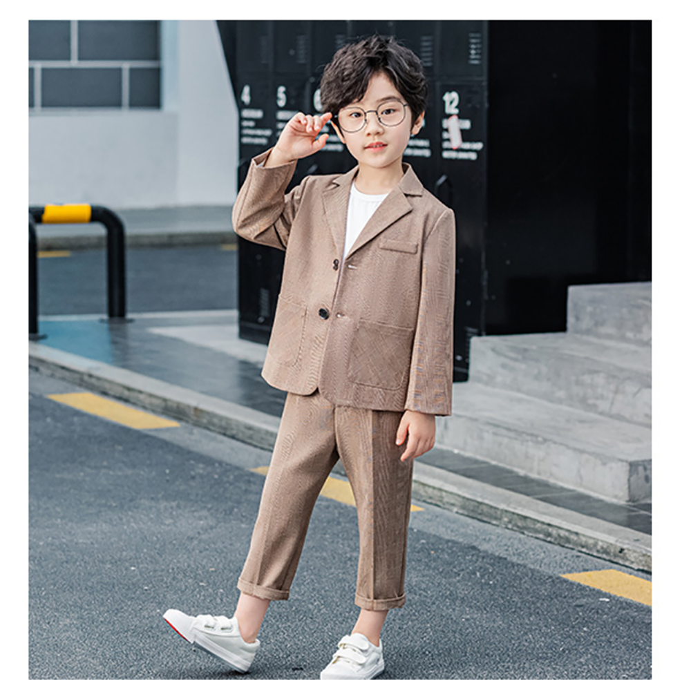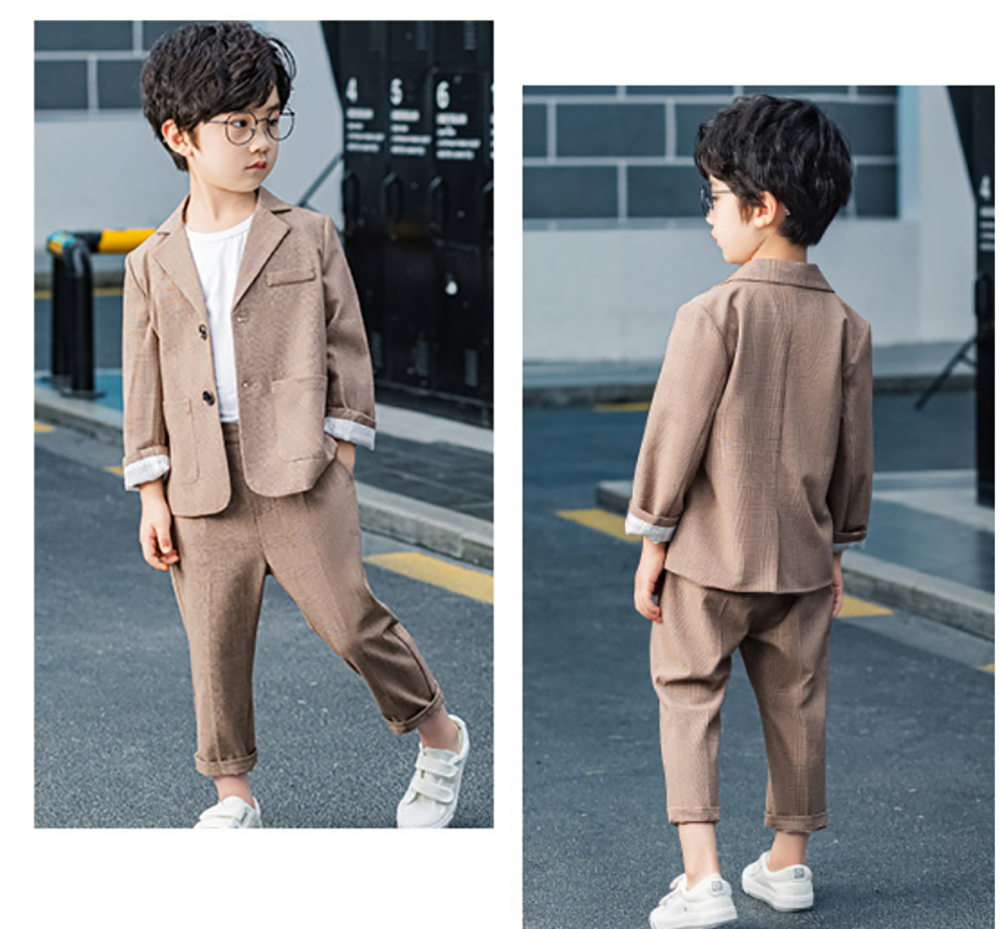Kvalitatīvs, ērts uzvalks zēnam brūnā krāsā.