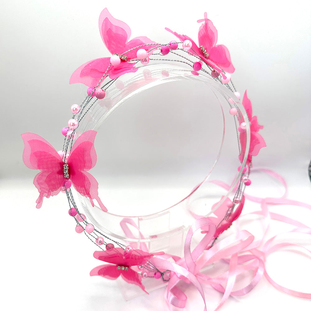 Koši rozā tauriņu matu rota ar rozā krāsas pērlītēm ir izgatavatota no augstas kvalitātes izejmateriāliem, rūpīgs roku darbs.